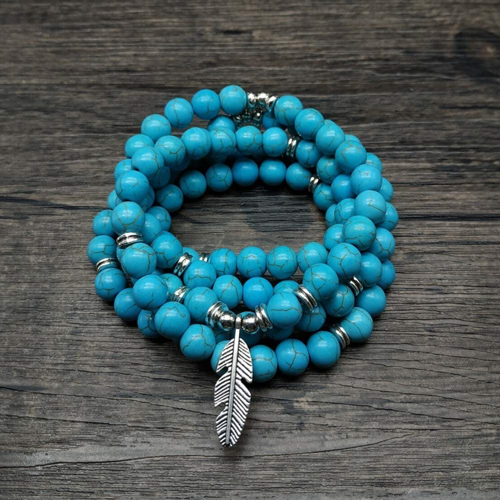 • ❁ GEMSTONE MEANINGS: Turquoise is believed to save the wearer from problems on a journey or adventure. The green turquoise mala beads elastic bracelet can be worn with the intention to destroy hatred and increase love.